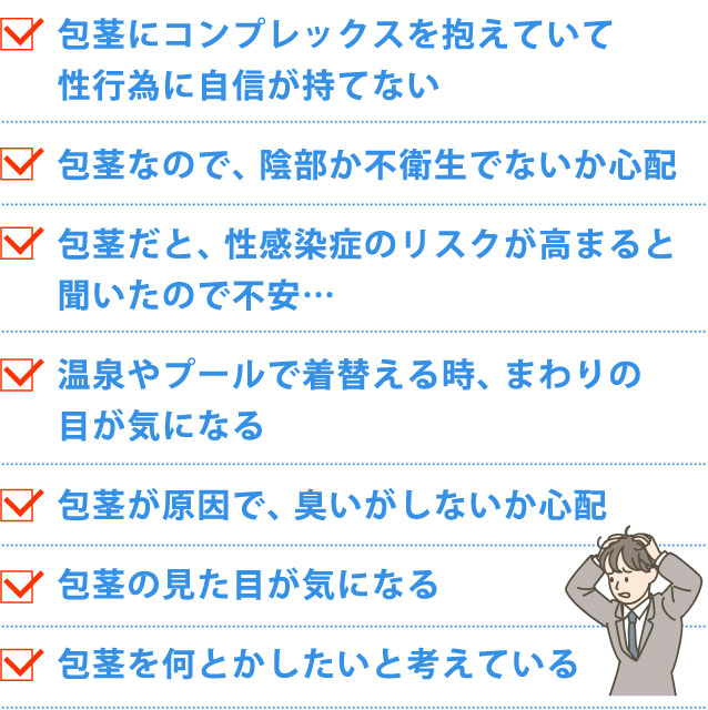 包茎であることで精神的コンプレックスを抱えているのならば、手術によってコンプレックスを解消できます。